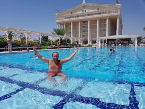 Otele ilk yerleştiğimde büyük ve hareketli bir yer olduğu hemen belli oluyordu. Ama garip şekilde bu kalabalık beni rahatsız etmemişti. Tam tersine, daha ilk günden insanı tatil moduna sokan bir havası vardı. Sabah kahvaltısı, gün içinde havuz ve deniz arasında geçen saatler, akşam olunca değişen tempo… Birkaç gün içinde insan bulunduğu yere alışıyor ve gerçekten gevşemeye başlıyor.